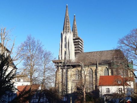 Jürgen Priegl ist so ein Meister. Kamelhaarfarbener Gehrock aus Leder und markante Schiebermütze, dazu seine adrette Weste. Schon von Weitem sieht man ihm seine Autorität und seine Faszination für die Vergangenheit an. Während der vergangenen 29 Jahre war er sowohl Baumeister als auch Leiter der Bauhütte, in der Restaurierungsarbeiten durchgeführt werden. Er führt mich bei meinem Besuch der westfälischen Wiesenkirche in Soest in so manches manches Geheimnis ein, das sich in und hinter den alten Steinen verbirgt.
